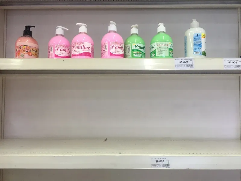 Người tiêu dùng thất vọng khi tìm không được hàng nước rửa tay, khẩu trang khi vào siêu thị.