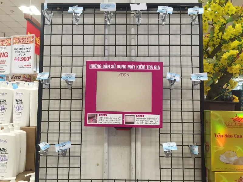 Tại kệ bán nước rửa tay cũng có thông báo tương tự.