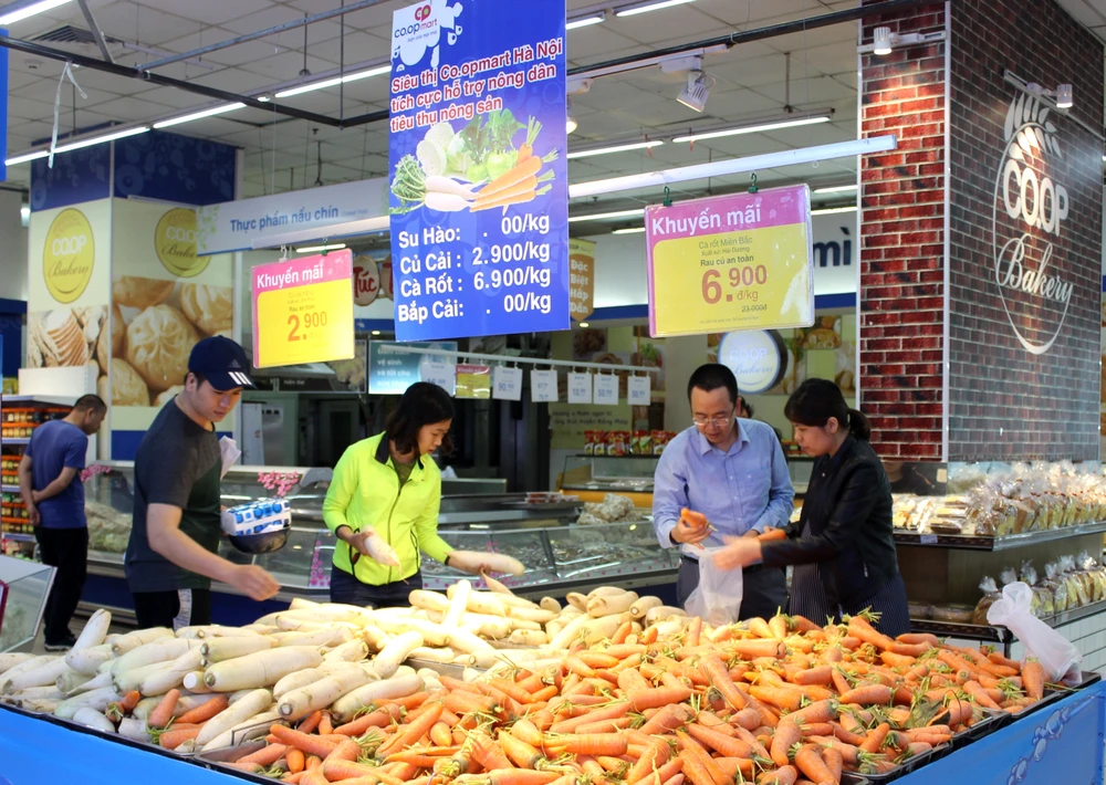 Người tiêu dùng mua củ cải trắng tại Siêu thị Co.opmart Hà Nội.