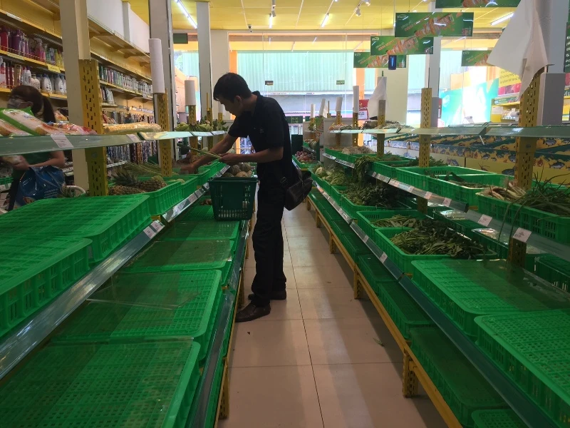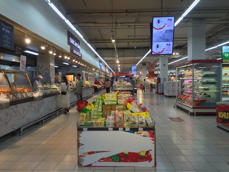 Ghi nhận tại một số siêu thị như Aeon Celadon quận Tân Phú, Siêu thị Lotte Mart quận Tân Bình, cửa hàng tiện lợi Bách Hóa Xanh… tình hình mua sắm yên ắng.