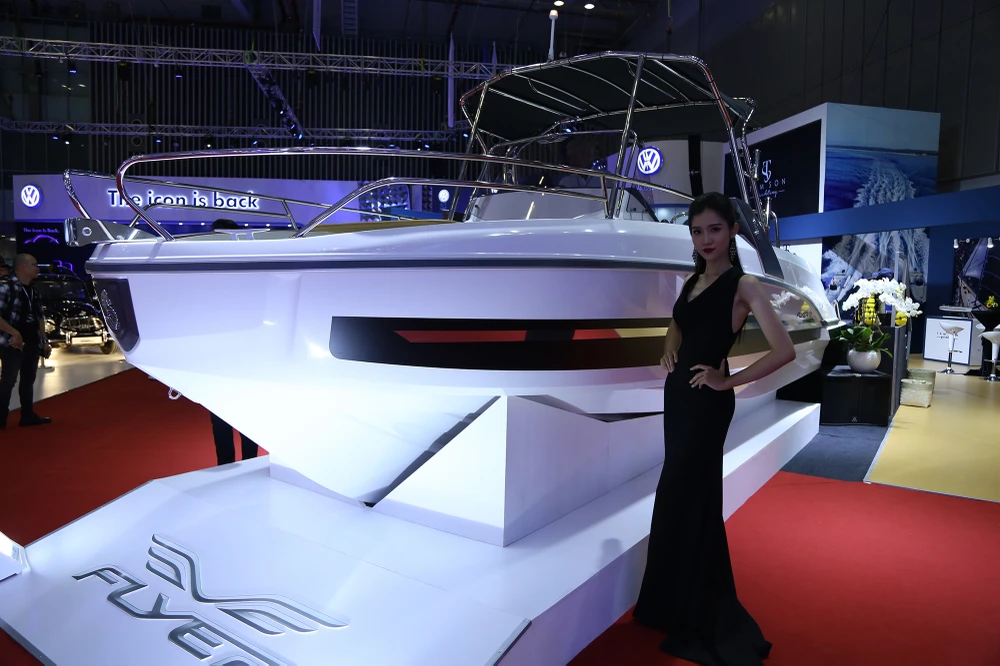 Đặc biệt, lần đầu tiên tại triển lãm, một công ty nhập khẩu du thuyền tại Việt Nam được giới thiệu Beneteau Flyer 7.7, chiếc ca-nô tốc độ cao.