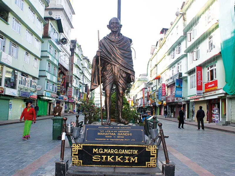 Tượng Mahatma Gandhi, vị anh hùng dân tộc của Ấn Độ, được đặt trang trọng tại Sikkim.