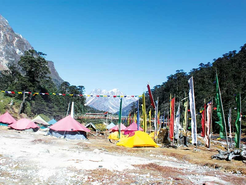 | Sikkim là một vùng miền núi, khí hậu lạnh quanh năm, cỏ hoa tươi tốt, rừng xanh bao phủ. Sikkim đẹp tuyệt vời. Thời điểm tôi đến là mùa hoa cherry rừng nở. Những cây cherry mọc trong vườn, dọc đường đi, trên những đồi chè hay giữa núi rừng vào mùa này không còn lá mà chỉ có hoa. Những chùm hoa cherry màu hồng dịu dàng. Bốn vùng của Sikkim mỗi nơi một kiểu, nơi nào cũng đẹp lạ lùng. Có nơi là những ngọn núi tuyết với những thung lũng hình thù lạ lùng, nơi thì là những đền đài cổ xưa, nơi khác là những tu viện chùa chiền độc đáo. Điều độc đáo nhất ở Sikkim là những ngọn cờ cầu nguyện. Đi đâu cũng thấy những cây cờ in chi chít những hàng chữ cầu nguyện, có khi cờ màu trắng, có khi màu xanh và có khi đủ màu. Người ta cắm cờ thành hàng ngay trước nhà, trên núi, bên bờ hồ, giữa rừng và cả những căn cứ quân sự. Khắp nơi, những cây cờ phần phật trong gió. Thật đặc biệt, riêng có ở Sikkim. Nên tôi cứ gọi Sikkim là xứ sở của cờ hoa. |