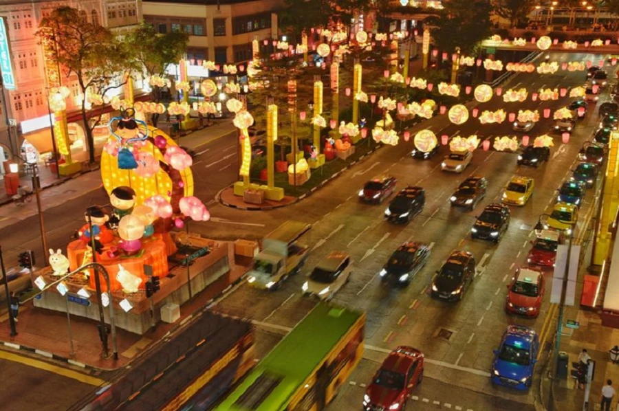 Lồng đèn trên đường phố ở khu Chinatown chào đón lễ hội trung thu năm 2020. ẢNH: STB
