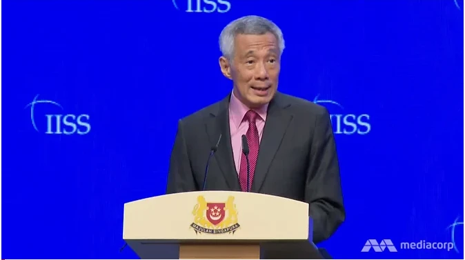 Thủ tướng Singapore Lý Hiển Long phát biểu tại Đối thoại Shangri-La ở Singapore hôm 31-5. Ảnh: CNA