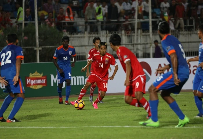 Dù chơi sân nhà nhưng Myanmar (đỏ) thua Ấn Độ 0-1