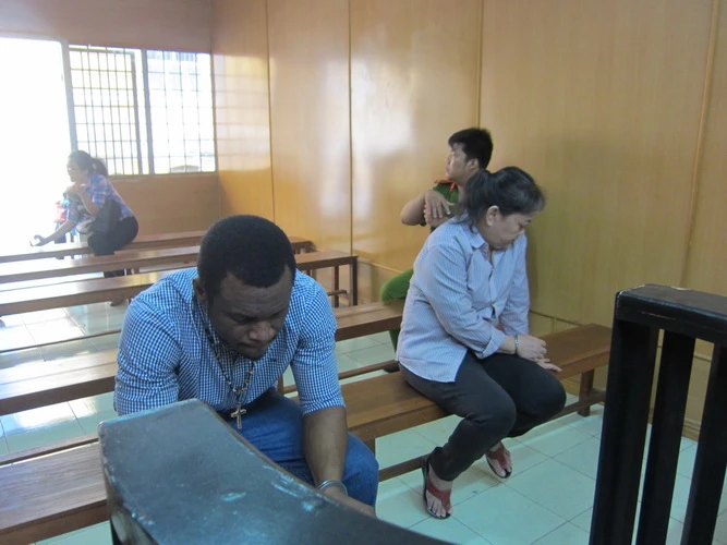 Okoye Uchenna và Xuân Hồng tại tòa. Ảnh: PL