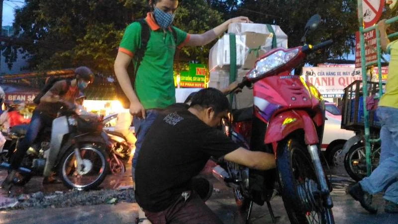 Ông Phạm Văn Thanh (ở phường 12, quận Gò Vấp) đi đón cháu đi học về thì xe chết máy nên chỉ biết tấp vào lề đường...