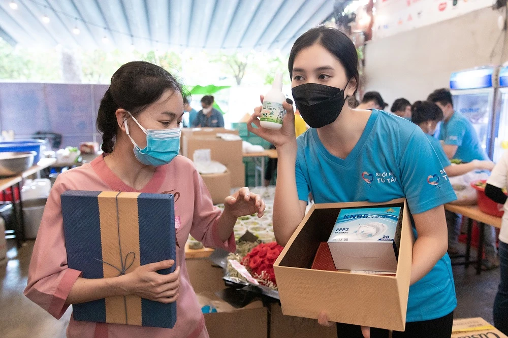 Nổi bật là nàng hậu đồng hành với bếp ăn thiện nguyện của CLB Suối mát Từ tâm để nấu ăn phục vụ đội ngũ tuyến đầu chống dịch.