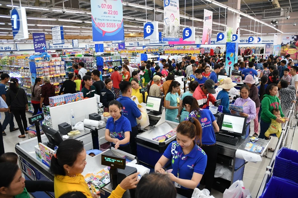 Đông đảo khách hàng đến mua sắm tại Co.opmart ngày cuối tuần