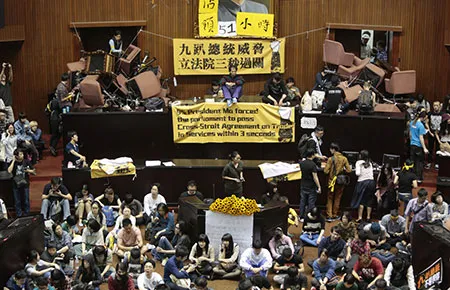 Theo AP, tối 18-3, 200 sinh viên đã xông vào chiếm phòng họp chính của cơ quan lập pháp. Sáng 19-3, 2.000 cảnh sát đến nhưng không giải tán được các sinh viên. Đụng độ xảy ra làm 38 cảnh sát bị thương.