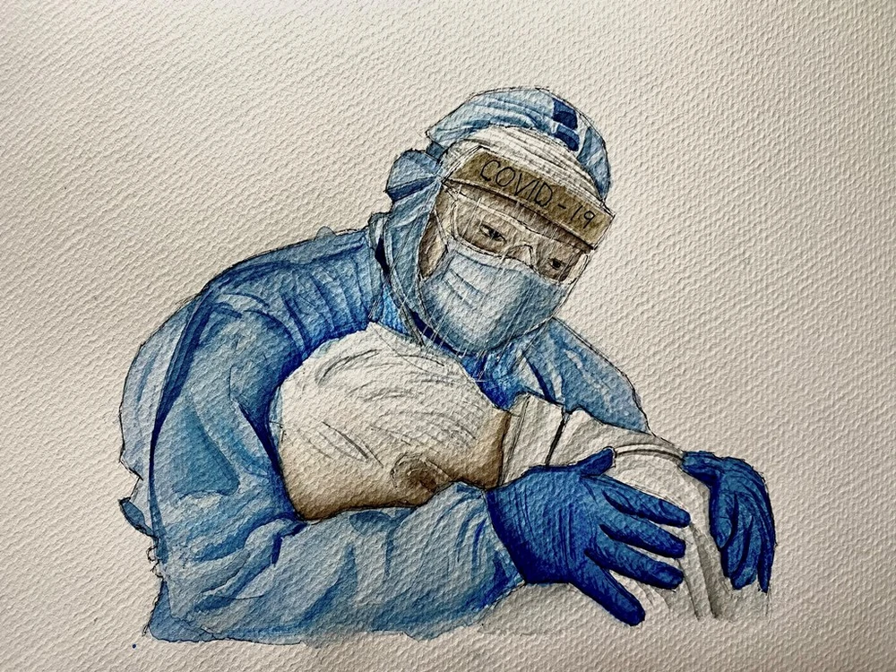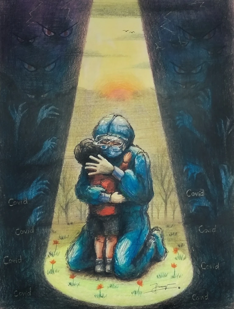 Bức tranh mang chủ đề “Những thiên thần chống Covid” của Lê Hoàng