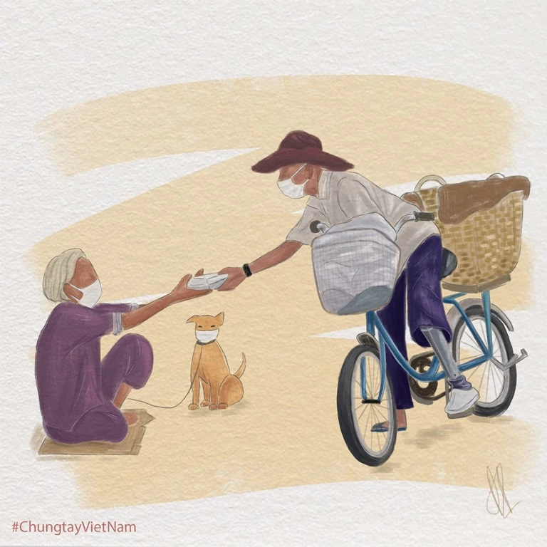 Bức tranh vẽ lại hình ảnh lá lành đùm lá rách của Đan Phương. Ảnh: NVCC