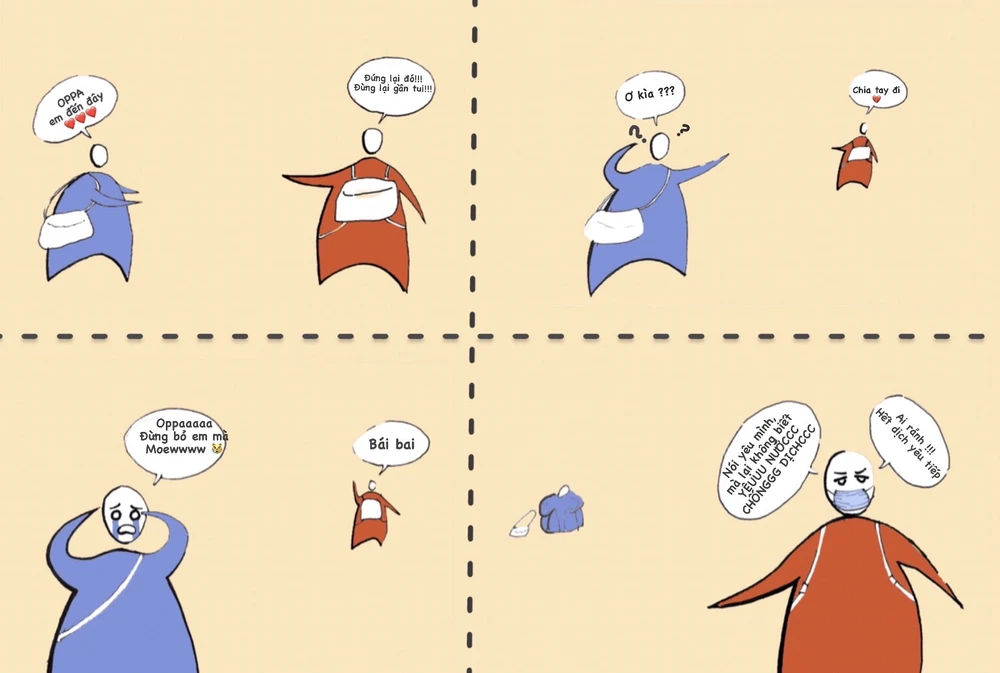 Thông qua bức tranh, mình muốn góp phần nâng cao ý thức cộng đồng, vì mình thấy vẫn có rất nhiều người bất chấp khuyến cáo của nhà nước để đi chơi, đi phượt rồi chở nhau hẹn hò khắp thành phố, không chịu ở yên một chỗ trong khi lực lượng tuyến đầu và cả nước đang căng mình chống dịch rất khó khăn, vất vả” – Trung Trực bộc bạch.
