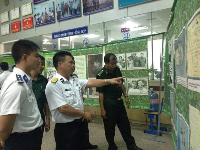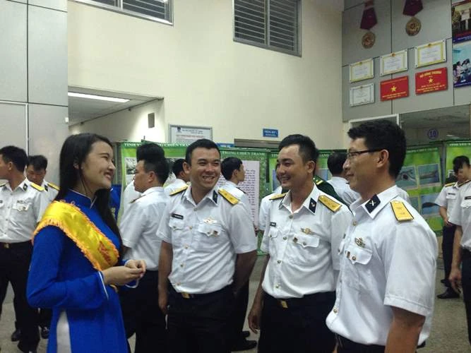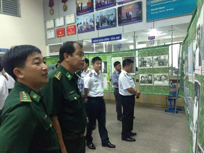 Cán bộ, chiến sĩ hải quân, biên phòng và kiểm ngư tham quan khu triển lãm tại Trường ĐH Nguyễn Tất Thành.