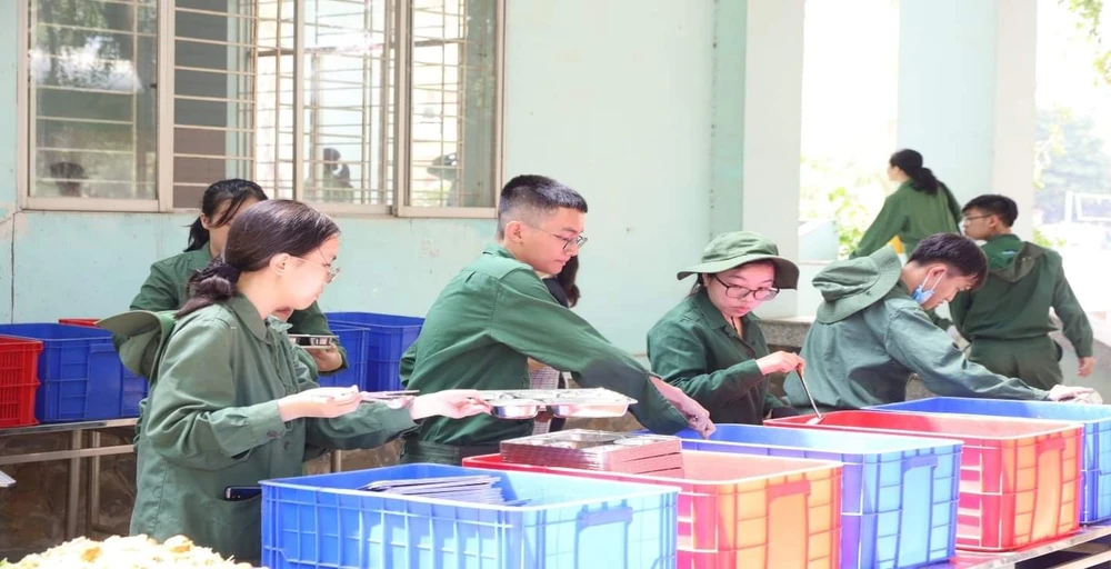 Sinh viên Trường ĐH KHXH&NV và Học viện Cán bộ TP.HCM đang trải nghiệm nếp sống quân đội ở Trung tâm Giáo dục quốc phòng và an ninh (ĐH Quốc gia TP.HCM). Ảnh: HOÀNG QUANH |
