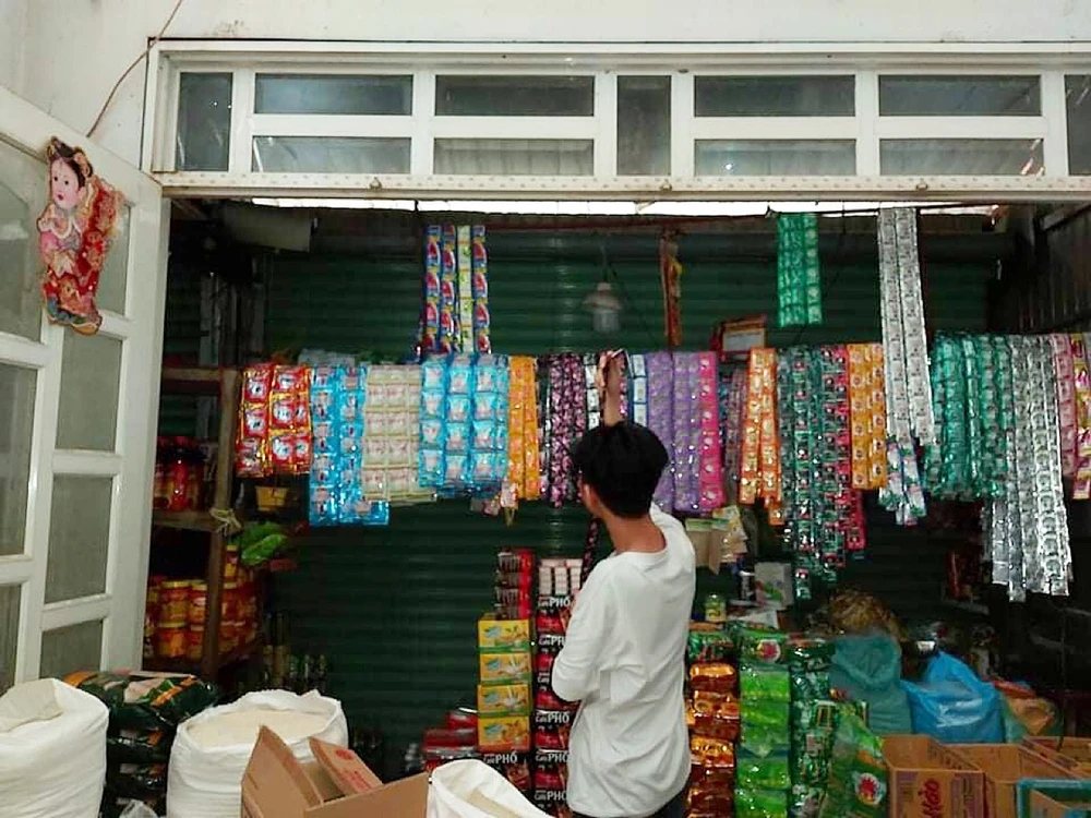 Tân giúp gia đình bán tạp hóa sau giờ học online. Ảnh: T.N