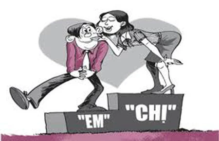 Tranh biếm họa về mối tình giữa “chị” với “em”.