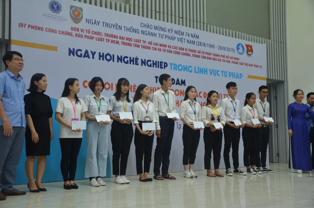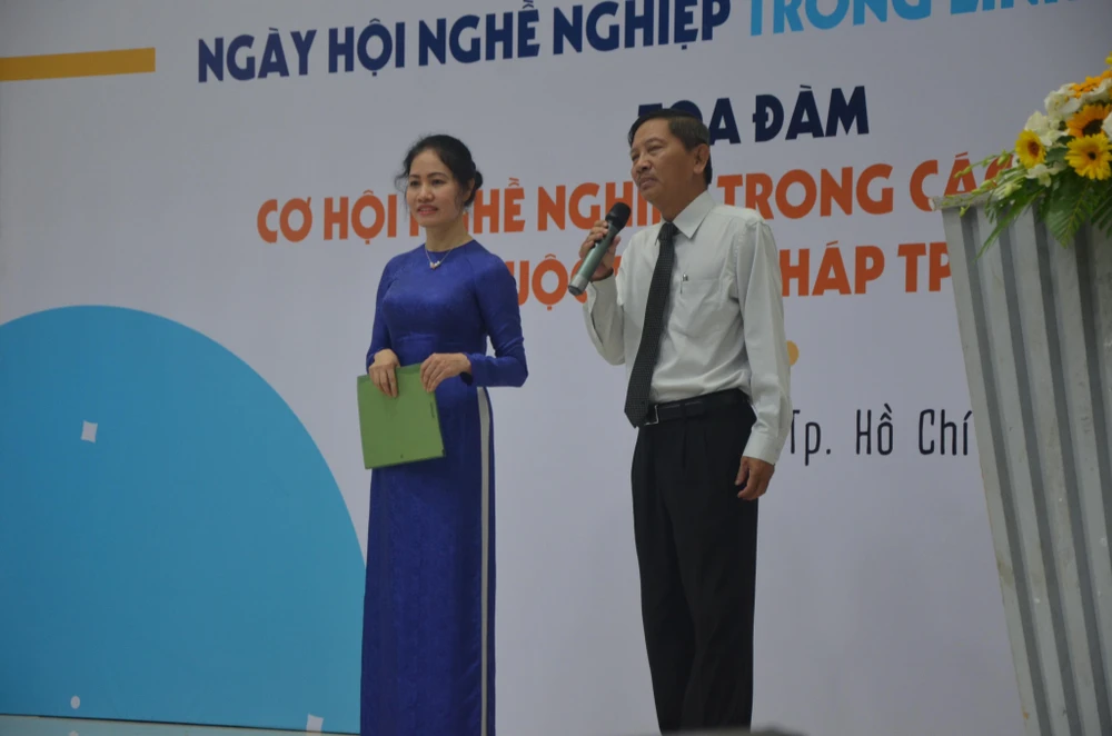 Đặc biệt, trong khuôn khổ chương trình đã diễn ra tọa đàm “Cơ hội nghề nghiệp trong các đơn vị thuộc Sở Tư pháp TP.HCM”. Bà Phan Thị Bình Thuận, Phó Giám đốc Sở Tư pháp TP.HCM, chia sẻ: “Tôi hy vọng với ngày hội hướng nghiệp trong lĩnh vực tư pháp sẽ giúp các em có một kênh thông tin để định hình nghề nghiệp của mình trong tương lai. Qua những thông tin mà các anh chị có chuyên môn và các đơn vị trực thuộc chia sẻ cho các em thì các em sẽ hình dung rõ hơn, cụ thể hơn về nghề nghiệp, trong đó có lĩnh vực về tư pháp".
