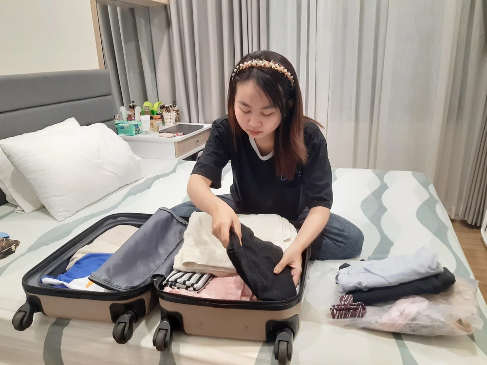 Tuyết Ngân chuẩn bị đồ đạc trở lại TP HCM để bắt đầu học kỳ mới. Ảnh: TÚ NGÂN.