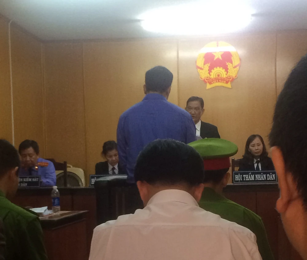 Bị cáo đang nghe toà tuyên án (Bị cáo mức án thấp, không đồng ý bị chụp hình nên PV chỉ chụp từ phía sau)