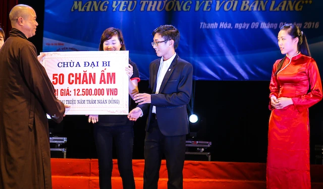 Toàn bộ số tiền này sẽ được dùng để xây dựng nhà ăn cho trường mầm non, mua giống cây trồng vật nuôi, hàng ngàn chiếc áo ấm, đồ dùng học tập và quà tết tặng cho các gia đình nghèo khó, các em học sinh hiếu học ở huyện Quan Sơn (tỉnh Thanh Hóa).