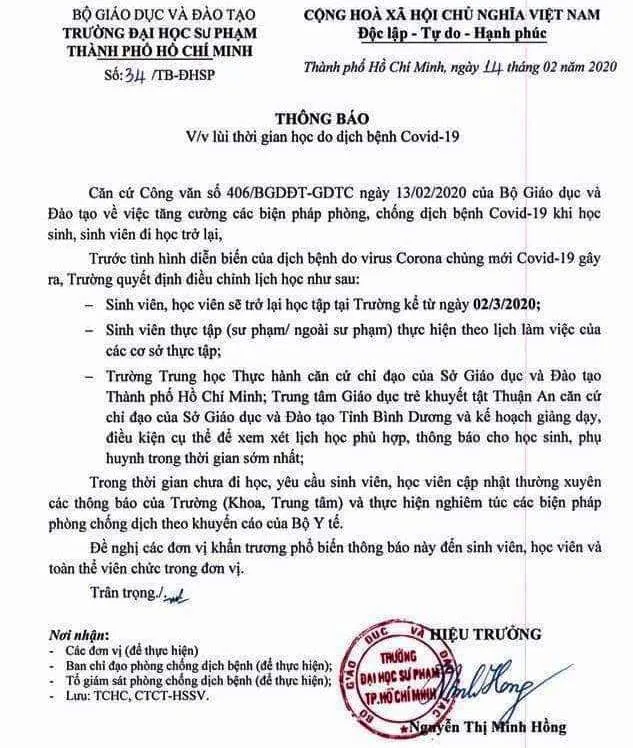 Thông báo mới nhất của Trường ĐH Sư phạm TP.HCM.