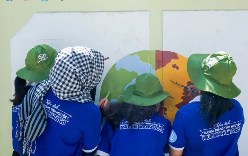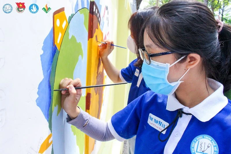 Bên cạnh đó, nhóm sinh viên cũng vẽ thêm bức tranh về chủ đề bảo vệ môi trường, nhằm kêu gọi mọi người “cùng chung tay bảo vệ môi trường sống xanh - sạch - đẹp” trong cộng đồng.