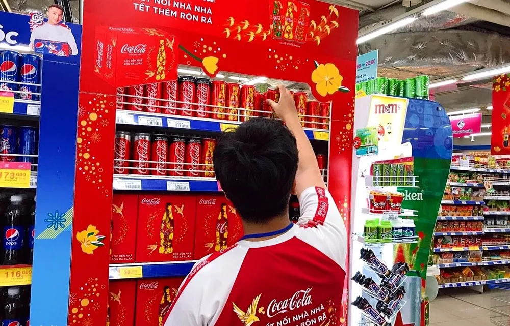Minh Thiện đang sắp xếp lại hàng hoá tại cửa hàng. Ảnh: TÚ NGÂN