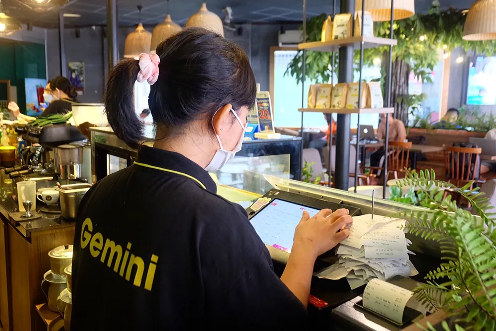 Kiều Chinh đang kiểm tra lại các đơn hàng đã bán để giao ca cho người tiếp theo. Ảnh: TÚ NGÂN