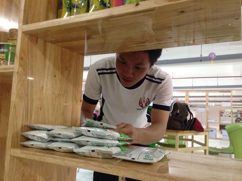 Ngoài ra, trường còn tạo công ăn việc làm để SV có thêm thu nhập từ các dịch vụ sửa máy tính, rửa xe, bán hàng... ngay tại trường. Chưa kể kênh việc làm của 800 thầy cô trong trường khi có dự án nghiên cứu cần thêm SV đăng ký qua trang dịch vụ của trường. Đáng chú ý, các em có nguồn thu nhập từ trợ lý giảng dạy, vì thông thường các môn lý thuyết SV học rất đông 70-100. Các giảng viên sẽ đăng ký trợ lý, chia nhỏ nhóm để hướng dẫn làm bài tập, báo cáo, dạy phương pháp mới. Công việc này mang lại thu nhập 30.000 đồng/giờ, gấp đôi so mức phục vụ nhà hàng, quán ăn. “Ngoài các chương trình nói trên, trường còn xây dựng “Góc chia sẻ”. Đây là nơi SV khó khăn của trường tự phục vụ bữa ăn hoặc mang gạo, mì gói, nước mắm, áo quần, sách vở, giày dép, xe đạp về dùng hoàn toàn miễn phí” - hiệu trưởng nhà trường chia sẻ.