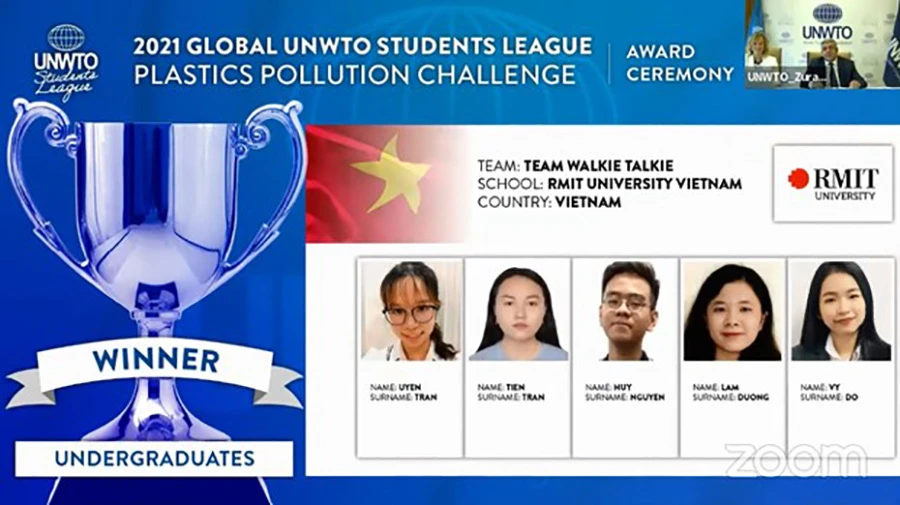 Với dự án hành động bền vững nhằm giảm thiểu rác thải nhựa tại đảo Phú Quốc, nhóm sinh viên Walkie Talkie ngành quản trị du lịch và khách sạn của ĐH RMIT đã giành giải nhất hạng mục Thách thức rác thải nhựa của cuộc thi toàn cầu UNWTO Students’ League.
