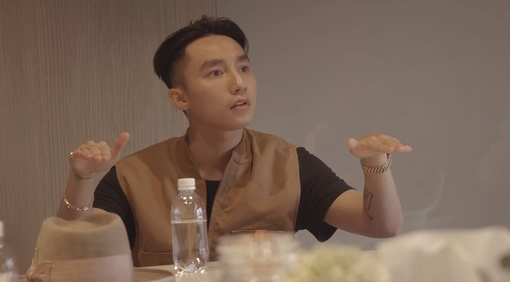 Giữa lúc tập trung làm việc, nam ca sĩ không giấu được những biểu cảm căng thẳng và có phần nghiêm nghị hơn so với hình ảnh khán giả thường thấy trên sân khấu.