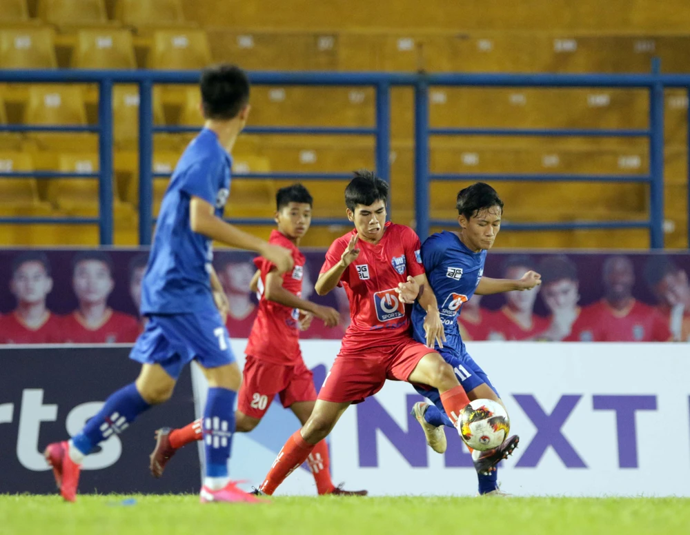 Ở vòng bảng, U-15 SL Nghệ An thể hiện sức mạnh của nhà ĐKVĐ khi dồn lên tấn công ngay từ những phút đầu trước các đối thủ U-15 Viettel, Becamex Bình Dương và TP.HCM.