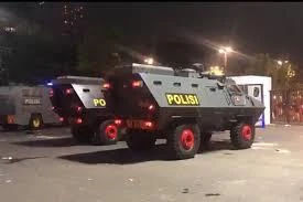 Những chiếc xe bọc thép chờ chở tuyển Malaysia rời sân Bung Karno.