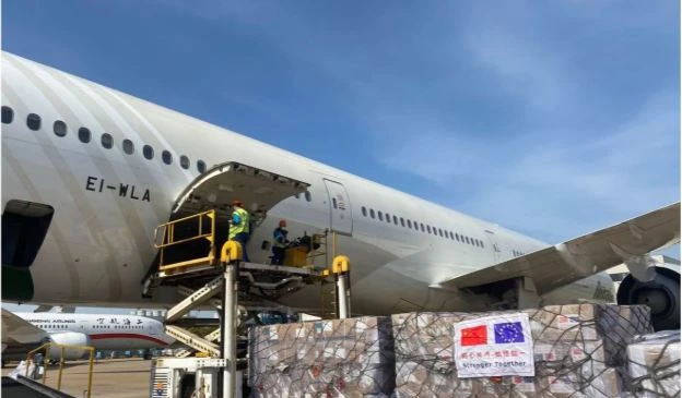 Một lô hàng vật tư y tế của Trung Quốc được chuyển đến châu Âu. Ảnh: EPA