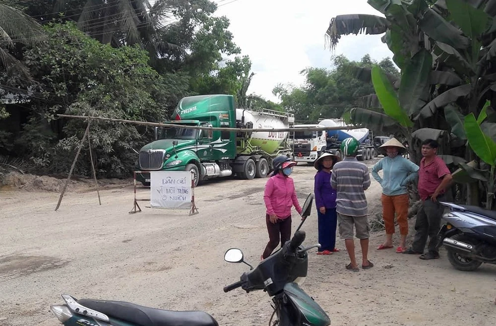 Chiều 25-5, hàng chục người dân xã Hòa Nhơn, huyện Hoà Vang, Đà Nẵng, vẫn còn dùng chướng ngại vật chặn không cho xe ben vào mỏ đá trên địa bàn. Họ đặt một bảng nhựa ghi dòng chữ: “Dân chết vì môi trường ô nhiễm” ngay barie.