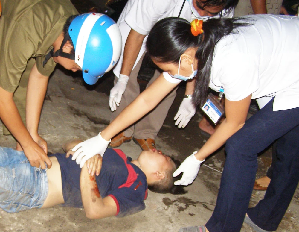 Người đi đường nên giữ hiện trường chờ nhân viên cấp cứu 115 tới xử lý chấn thương của nạn nhân. Ảnh: TRẦN NGỌC.