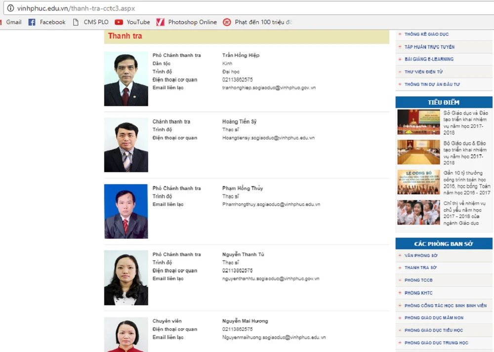 Thanh tra Sở GD&ĐT tỉnh Vĩnh Phúc có 4/5 người giữ chức Chánh Thanh tra và Phó Chánh thanh tra, duy nhất bà Nguyễn Mai Hương là chuyên viên.