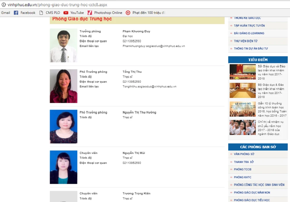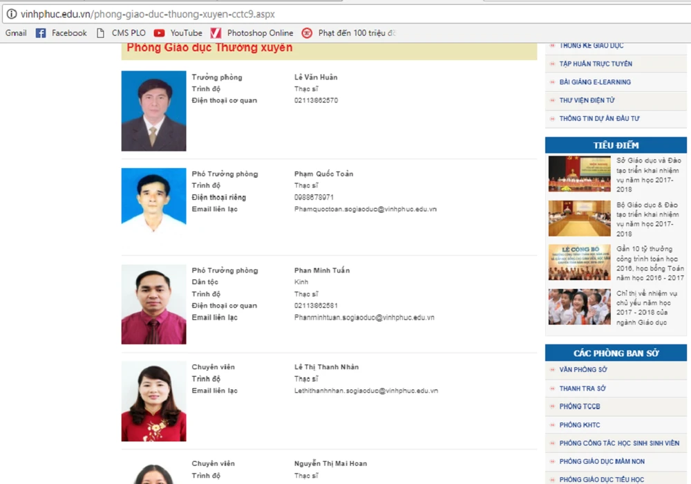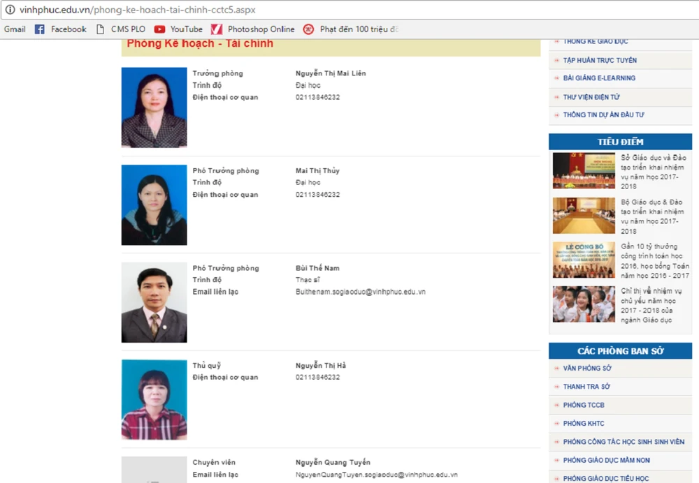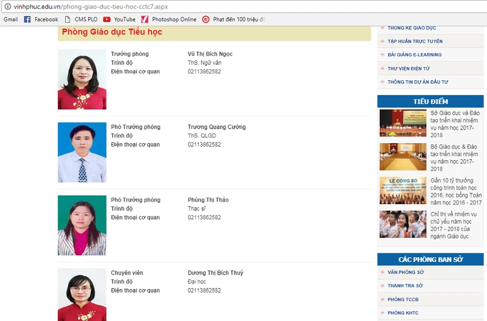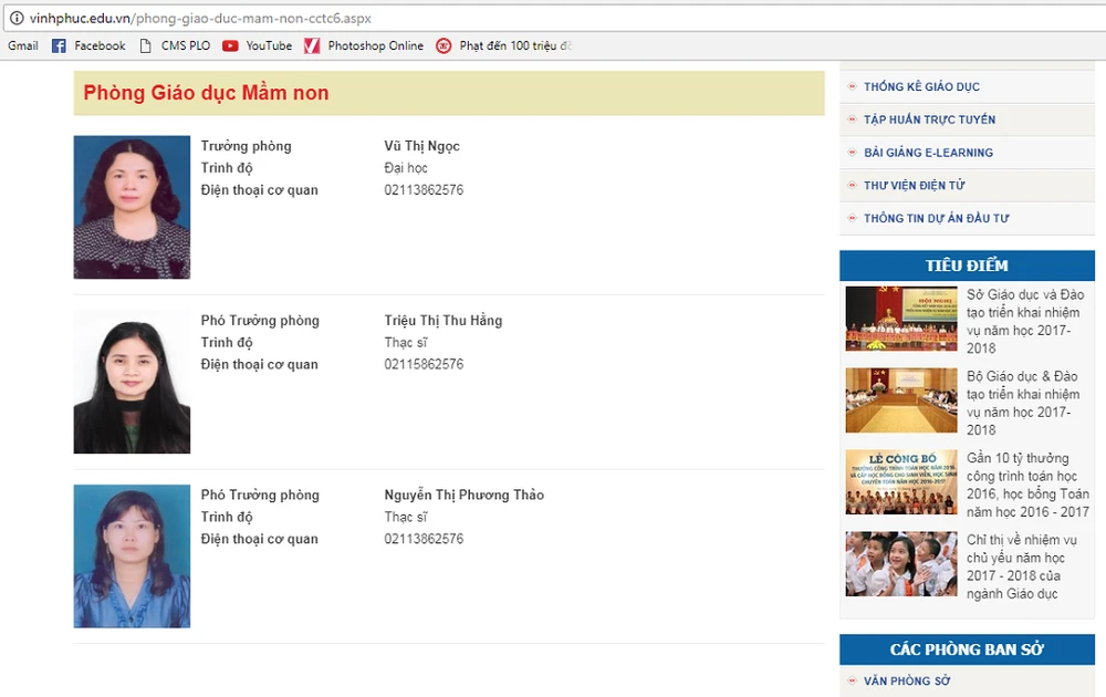 Phòng Khảo thí và Kiểm định chất lượng giáo dục có 4 người thì 3 lãnh đạo. Ảnh chụp màn hình