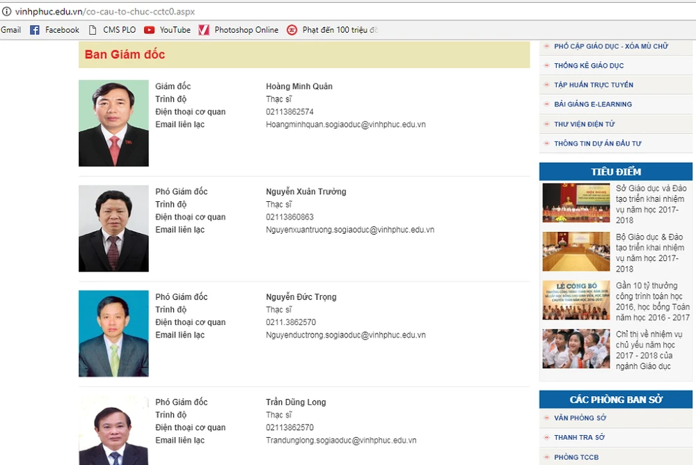Cụ thể, tại Sở GD&ĐT tỉnh Vĩnh Phúc, đơn vị này có 45 công chức thì 38 người trong số này làm lãnh đạo từ cấp sở cho đến phòng, ban.
