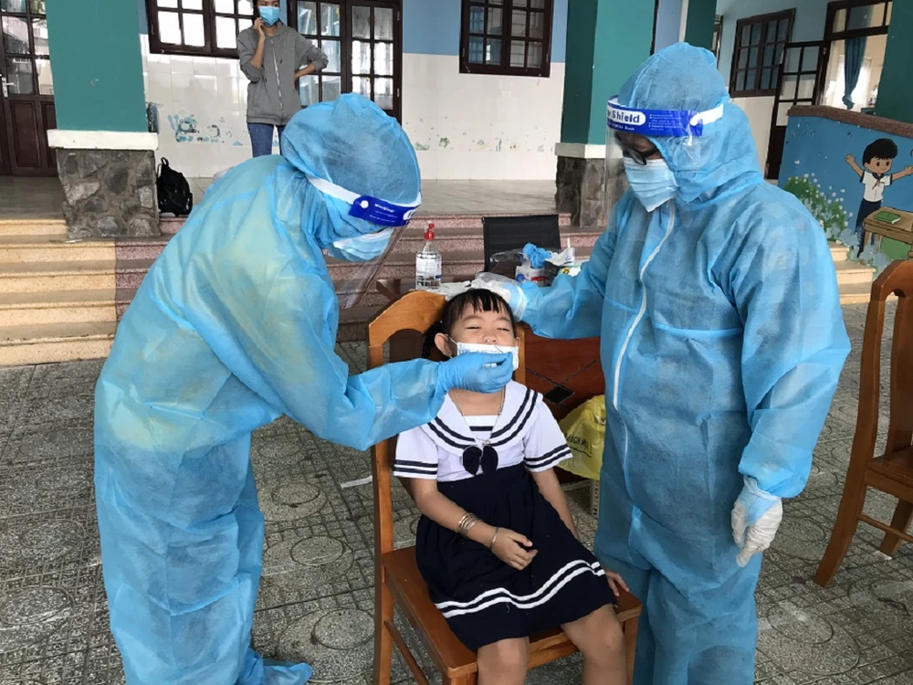Học sinh trường Tiểu học Thạnh An, huyện Cần Giờ được xét nghiệm COVID-19, chuẩn bị cho việc trở lại trường. Ảnh: HB