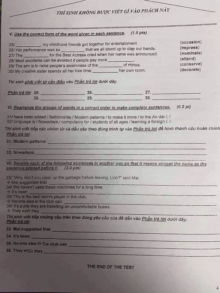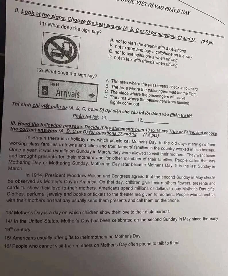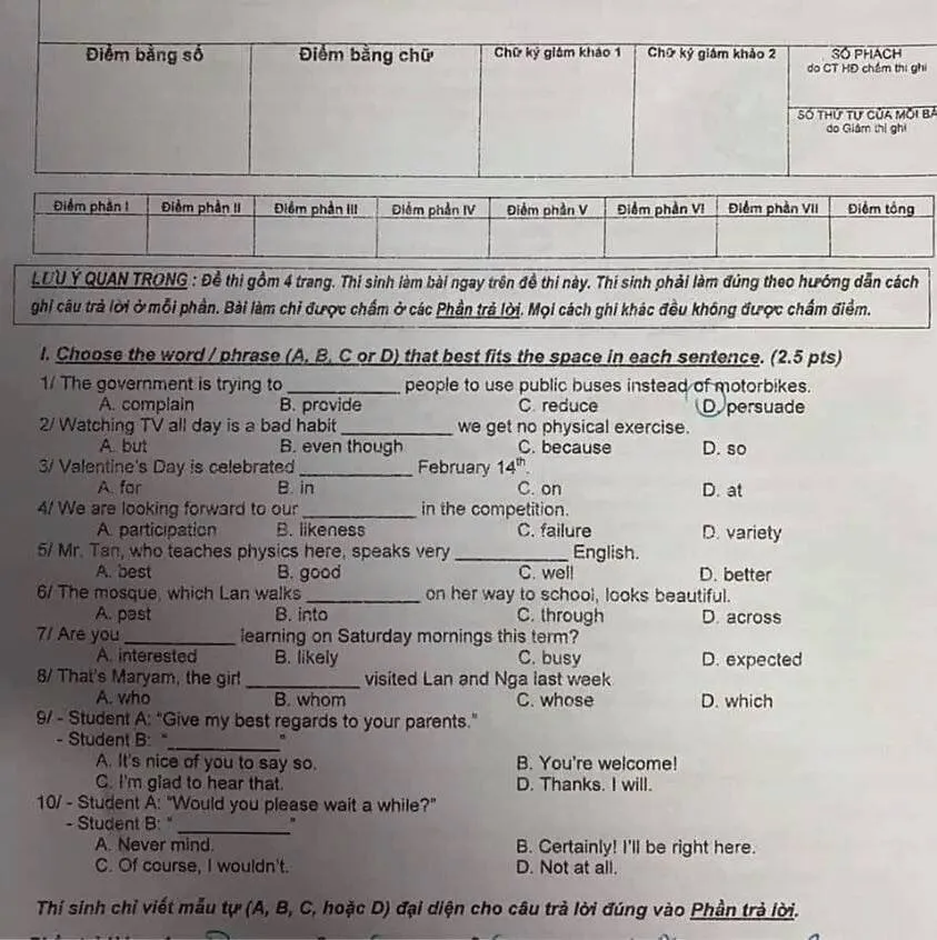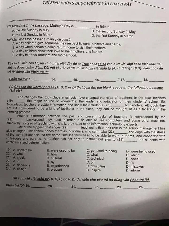 Đề thi tiếng Anh xuất hiện trên mạng xã hội.