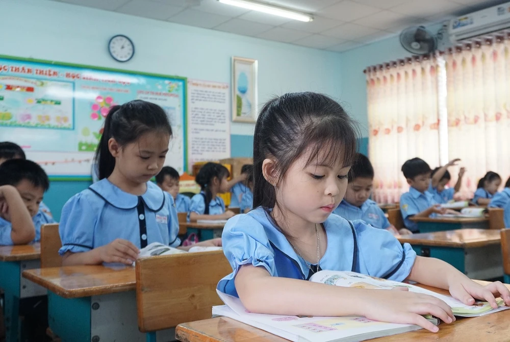 Học sinh lớp 1 trường Tiểu học Triệu Thị Trinh trong 1 tiết học. Ảnh: NQ