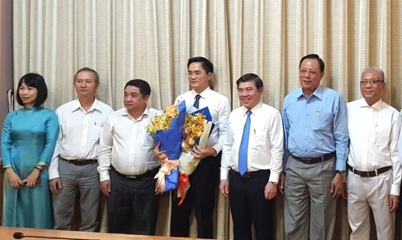 Lãnh đạo TP.HCM chúc mừng ông Trần Quang Lâm. Ảnh: TÁ LÂM