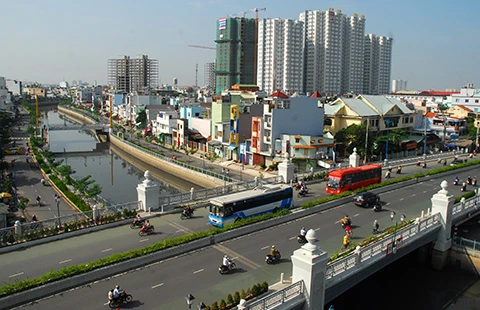 Cầu Hậu Giang mới trên dòng kênh Tân Hóa-Lò Gốm kết nối giao thông thuận lợi trên địa bàn quận 6 (TP.HCM). Ảnh: HTD