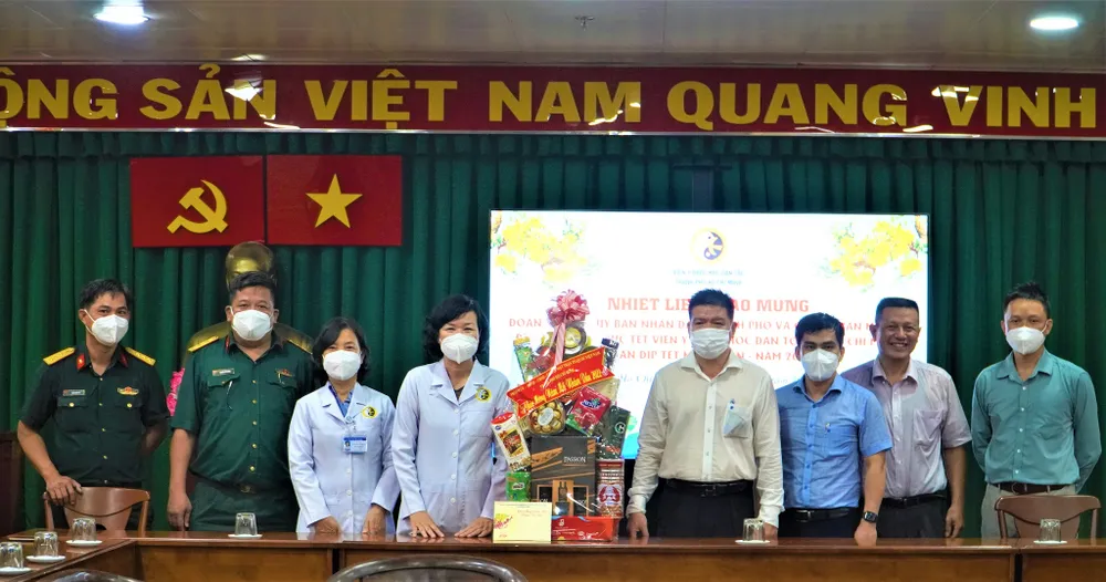 Ngoài ra, đoàn còn đến thăm và chúc Tết đến lực lượng y bác sĩ tuyến đầu tại Viện Y dược học dân tộc.