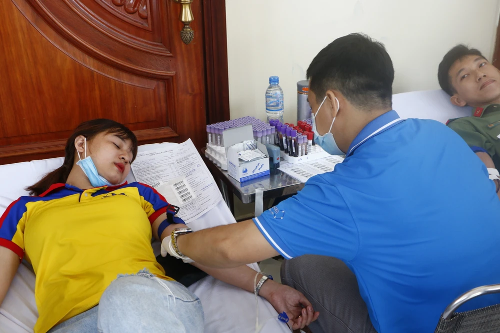 Sợ kim tiêm nhưng Phượng vẫn tham gia hiến máu cứu người. Ảnh: LÊ ÁNH