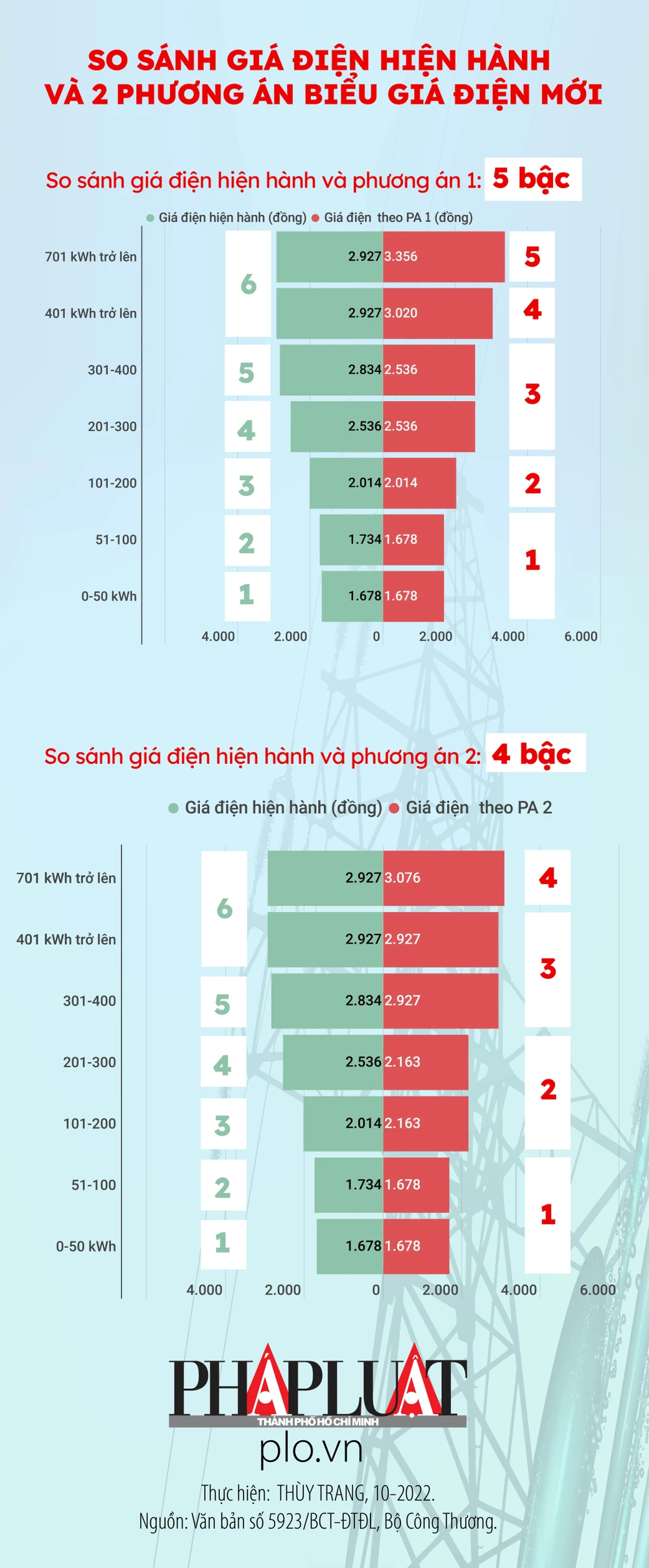 So sánh biểu giá điện sinh hoạt hiện hành và 2 phương án theo đề xuất mới