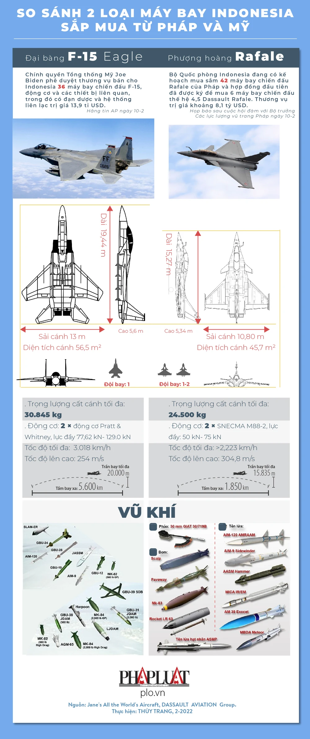 (PLO)- Cùng so sánh 36 máy bay chiến đấu F-15 của Mỹ và 42 máy bay chiến đấu Rafale của Pháp mà Indonesia sắp mua.